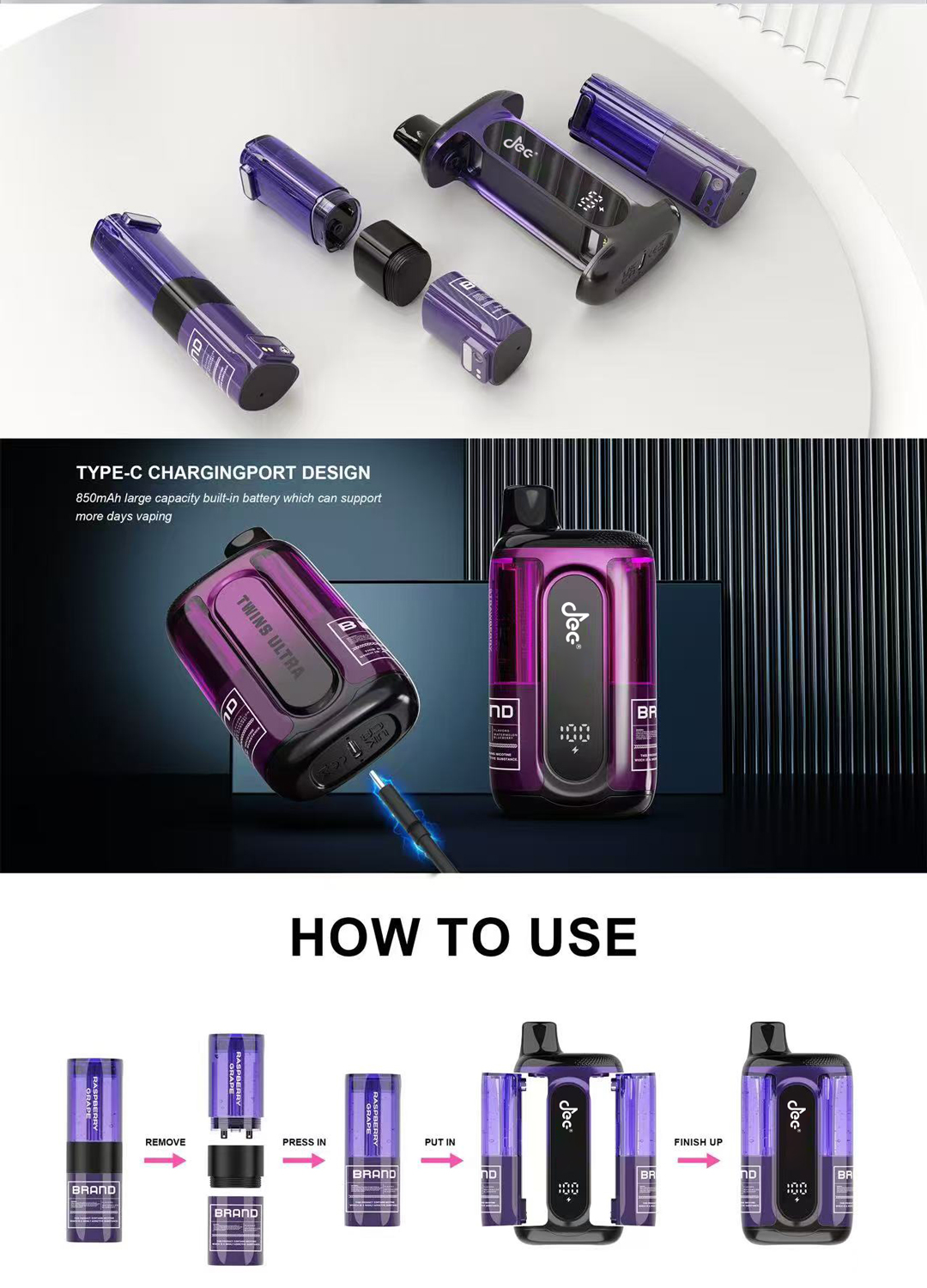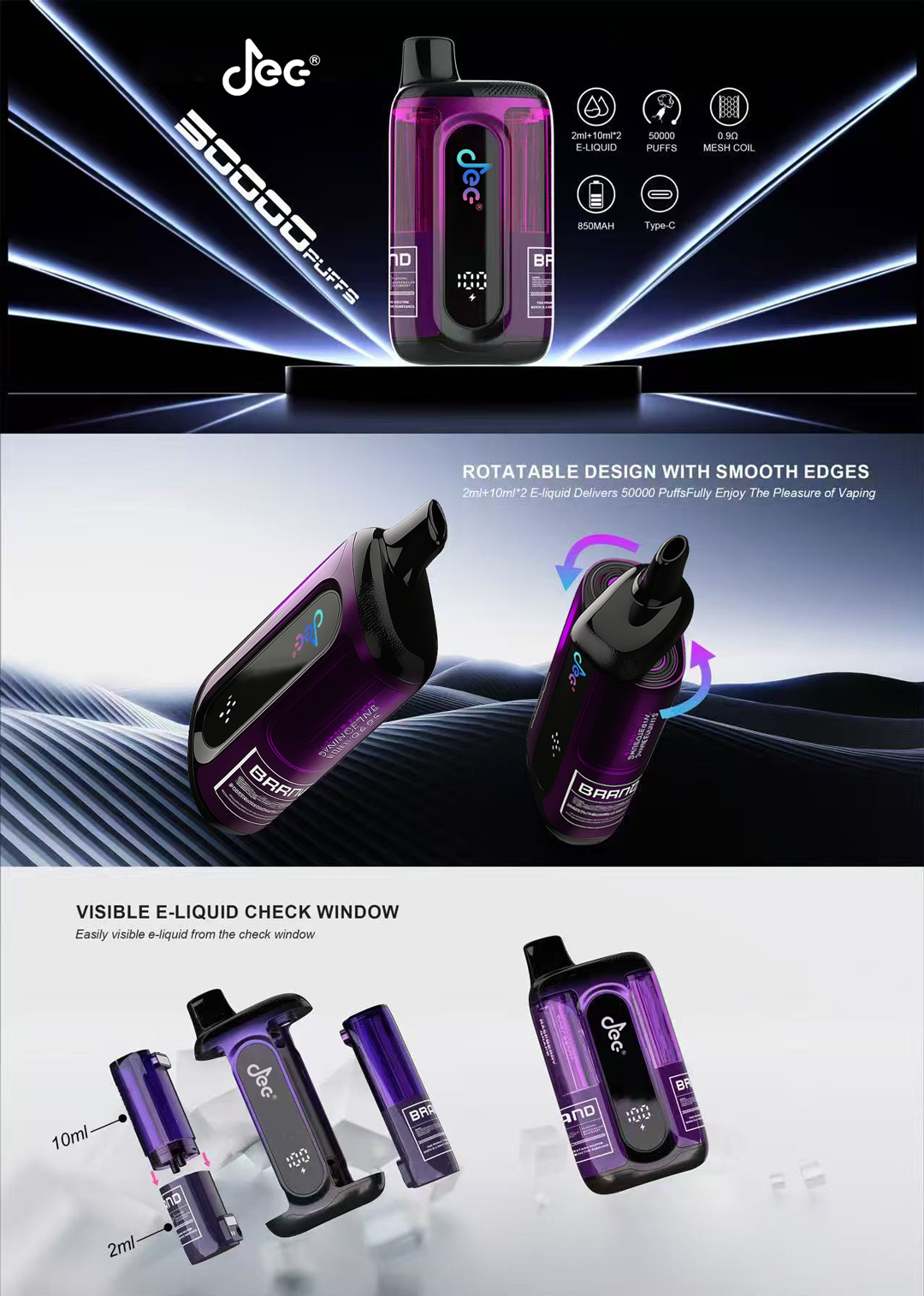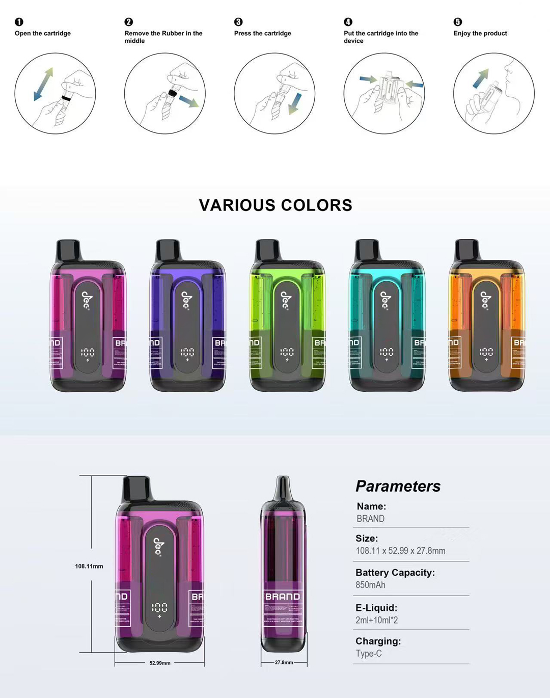 | COLOR SCREEN DISPLAY FUEL AND ELECTRICITY LEVELS REPLACEABLE OIL CUP 0.9Ω MESH COIL 850mAh (2+10)*2ML LIQUID USB Type C charging VISIBLE E-LIQUID CHECK WINDOW VARIOUS COLORS |